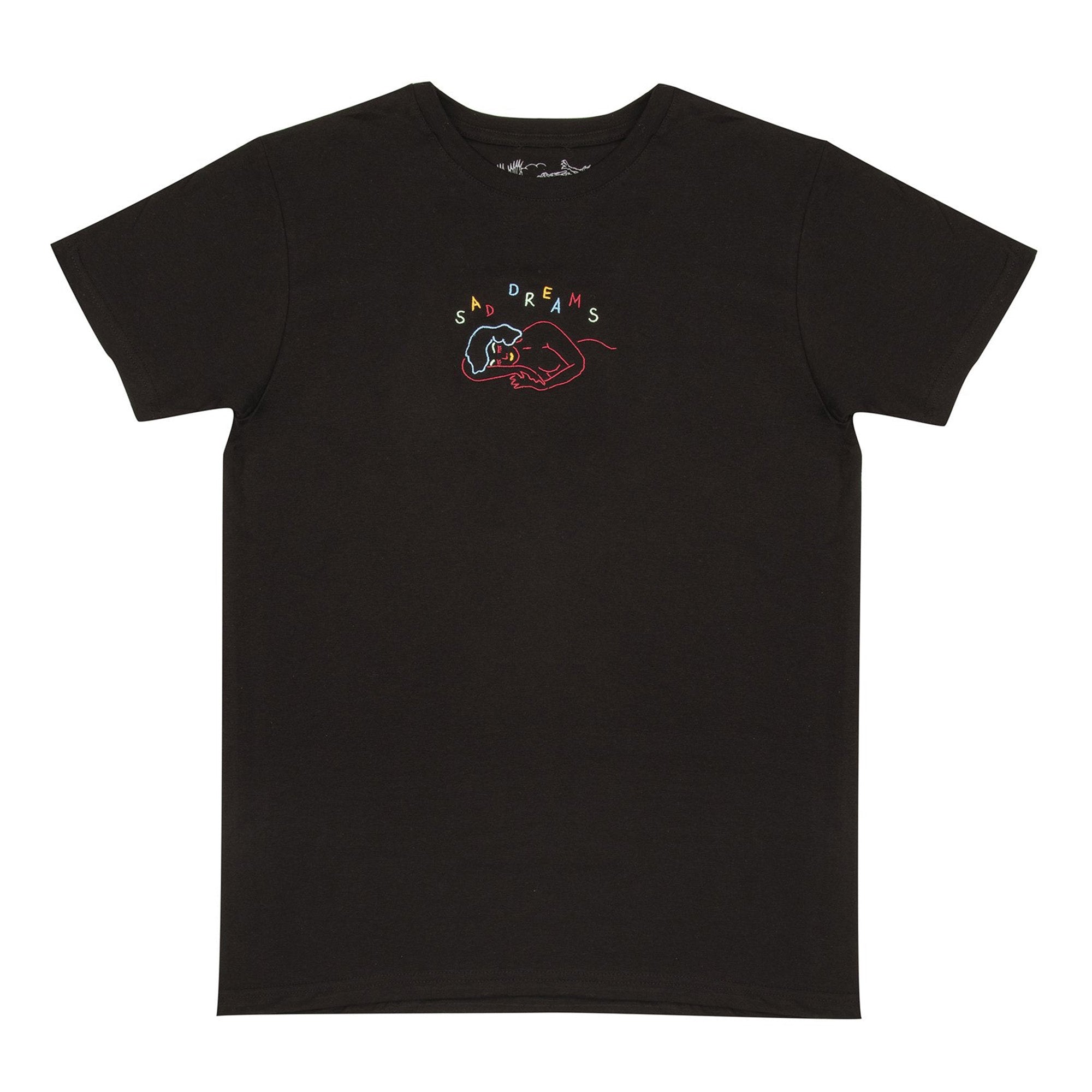 Stay comfortable and stylish in this Sad Dreams t-shirt. It is crafted from 100% cotton fabric for breathable wear, and features a unique embroidered front detail. Whether you're out and about or at home, this black t-shirt will ensure you look effortlessly cool.